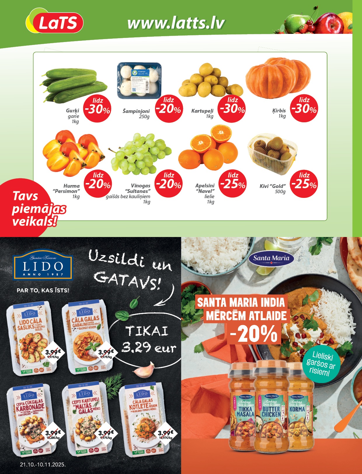 Akcijas spēkā LaTS veikalos visā Latvijā. Akcijas periods: 21.10.2025 - 10.11.2025.